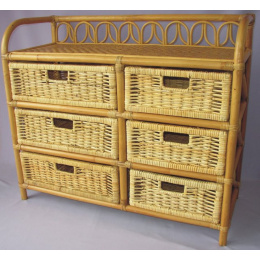 Ratanový nábytek - ratanová komoda 6 zásuvek z přírodního ratanu. | Barva ratanové konstrukce i výpletu je medová Velikost ratanové komody je 85x35x75 cm Praktická komoda na ukládání různých věcí. Poslouží také jako praktický prádelník.