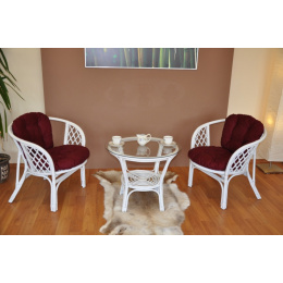 Ratanová sedací souprava Bahama bílá 2+1, polstry vínové