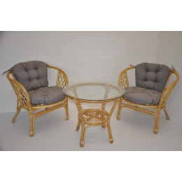 Ratanová sedací souprava Bahama malá medová polstry šedý melír