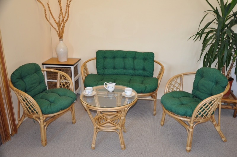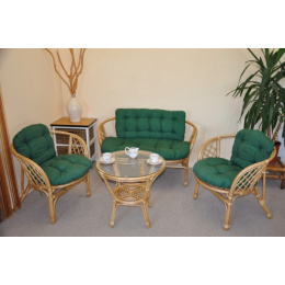 Ratanová sedací souprava Bahama medová velká polstry tmavě zelený melír