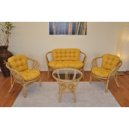 Ratanová sedací souprava Bahama medová velká polstry žlutý melír