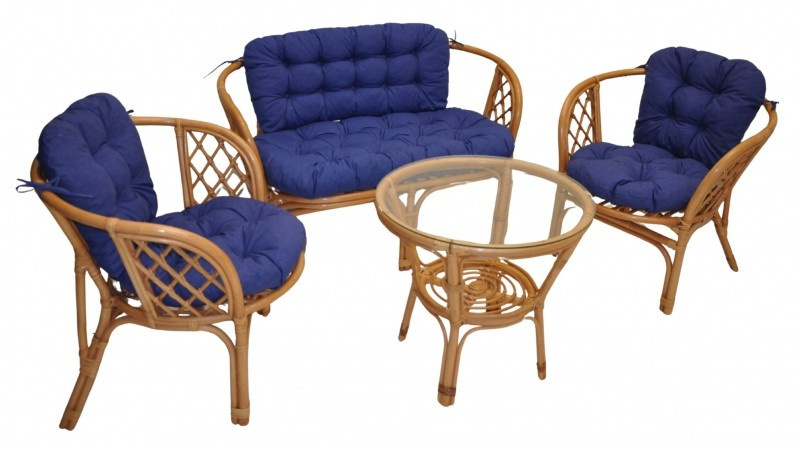 Ratanový nábytek - ratanová sedací souprava Bahama je vyrobena z přírodního ratanu s barvou konstrukce v tmavě medovém odstínu. Souprava obsahuje pohovku, 2 křesla, stolek se sklem a kompletní sadu polstrů. | Barva ratanové konstrukce i ratanového výpletu je tmavý med. Velikost pohovky je 115x66x73 cm, nosnost pohovky je 150 kg. Velikost křesla je 68x66x73 cm, nosnost křesla je 110 kg. Výška sedu je 44 cm. Stolek má výšku 55 cm, průměr stolku je 60 cm. Náplň polstrů je drcený molitan a polstry lze prát ručně na 40o C.