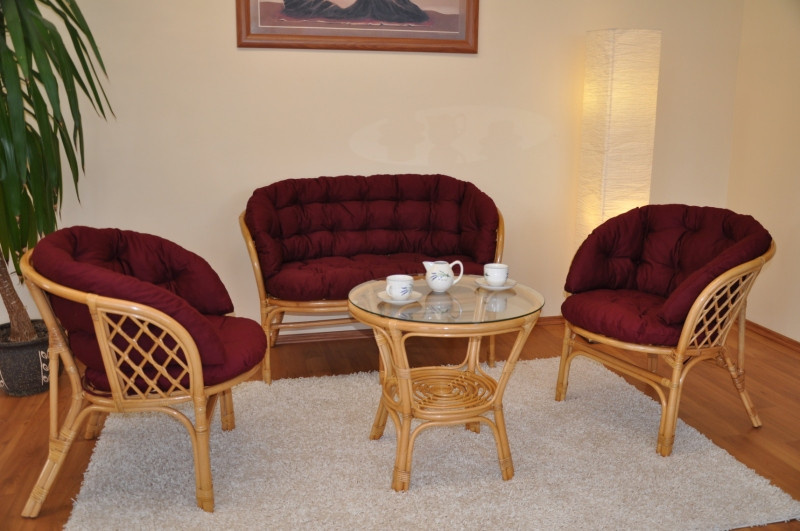 Ratanová sedací souprava Bahama velká medová polstr vínový MAXI