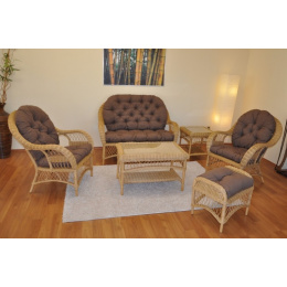Ratanová sedací souprava Florida medová - polstry hnědý melír