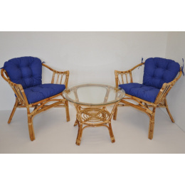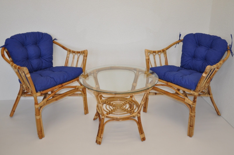 Ratanová sedací souprava Subaliu se skládá ze dvou křesel, stolku se skleněnou deskou a sady polstrů. | Ratanová sedací souprava Subaliu je vyrobena z přírodního ratanu semambo, který se vyznačuje vysokou pevností a stálostí. Velikost křesla je 65x67x77 cm. Výška sedu křesla je 44 cm. Nosnost křesla je 115 kg. Velikost stolku se skleněnou deskou je: průměr 60 cm, výška 51 cm. Polstry na tuto sedací soupravu jsou vyrobeny v České republice. Polstry jsouvyrobeny z kvalitní látky a vyznačují se vysokou kvalitou zpracování.Polstry pro nás vyrábí firma AXIN Cuschions s.r.o., která zaměstnávávýhradně místní vyučené švadleny z České republiky. Tímto způsobem sesnažíme podporovat výrobu a zaměstnanost v naší republice. Náplň polstrů je drcený molitan a polstry lze prát ručně na 40o C. >>