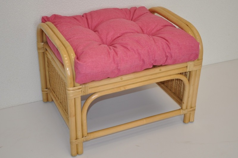 Ratanová taburetka Ear medová polstr malinový melír