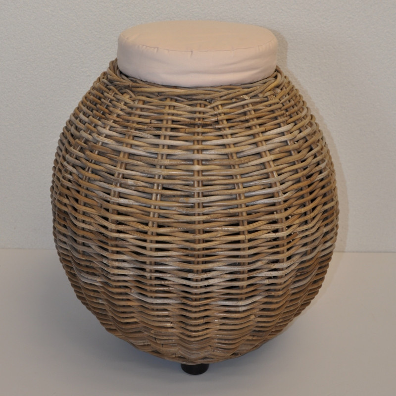 Ratanová taburetka vyrobená z přírodního ratanu s výpletem z ratanu kubu v přírodní šedé barvě. | Velikost taburetky je: průměr 50 cm, výška 56 cm Nosnost taburetky je 125 kg