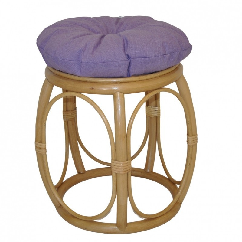 Ratanová taburetka široká medová polstr fialový melír