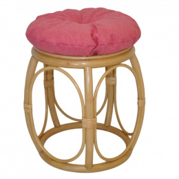 Ratanová taburetka široká medová polstr malinový melír