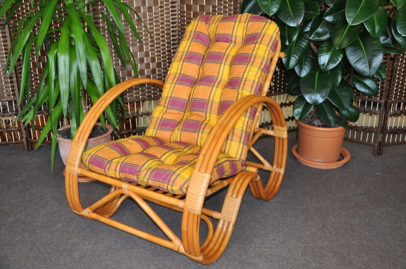 Ratanový nábytek - ratanová taburetka s polstrem. | Průměr taburetky v horní části je 35 cm. Výška taberetky je 38 cm. Nosnost taburetky je 110 kg. Barva ratanové konstrukce je medová. Polstr je vyrobený v České republice a je pratelný na 40oC. Materiál polstru je 100% bavlna, výplň polstru je drcený molitan.