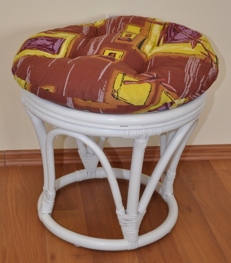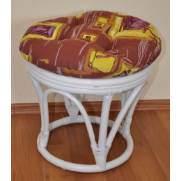 Ratanová taburetka velká bílá polstr hnědý list