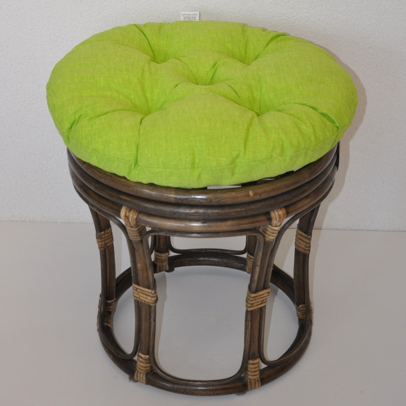 Ratanová taburetka velká hnědá polstr světle zelený melír