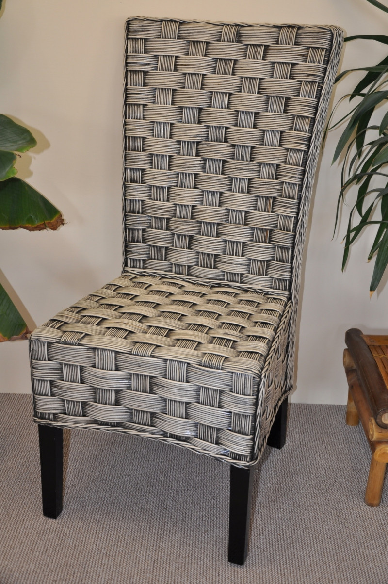 Jeden kus. Konstrukce židle je vyrobena z masivního mahagonového dřeva. Výplet je vyhotoven z přírodního ratanu. | Barva ratanového výpletu je brown wash. Ratan je nejprve barven do medové barvy a po zaschnutí přebarven do barvy hněté. Tato barva je ještě za mokra ze židle setžena a zůstává pouze v místech křížení průpletu a v záhybech. Tím je docílen originální design židle. Barva nohou židle je černá. Nosnost židle 130 kg Velikost židle je 50x60x105 cm, výška sedu 47 cm. Vzhledová vada se týká jednoho proutku výpletu - téměř neviditelné.