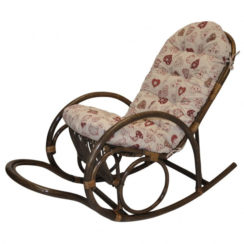 Ratanové houpací křeslo Jenaira hnědé polstr motiv černená srdce
