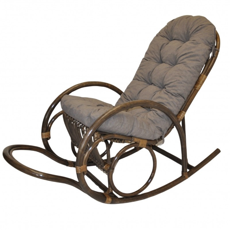 Ratanové houpací křeslo Jenaira hnědé polstr šedý melír