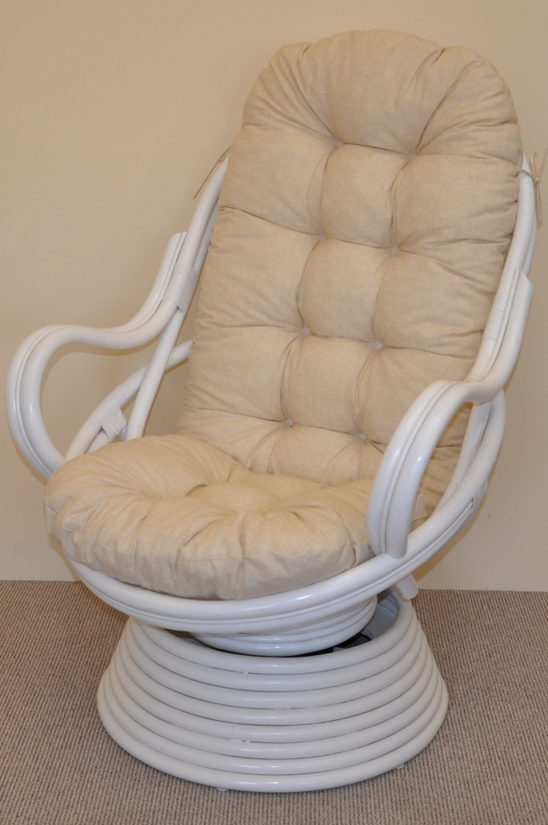 Ratanové houpací křeslo Swivel bílé polstr béžový melír