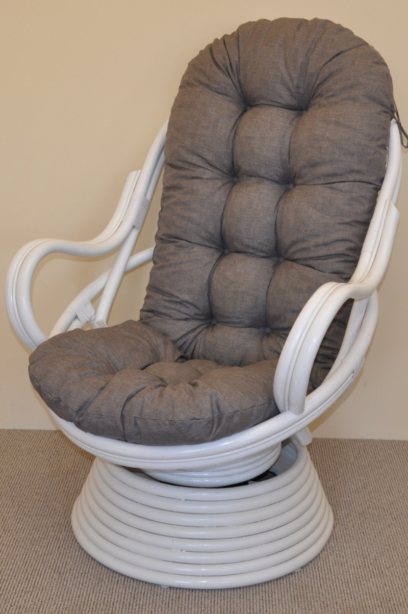 Ratanové houpací křeslo Swivel bílé polstr šedý melír