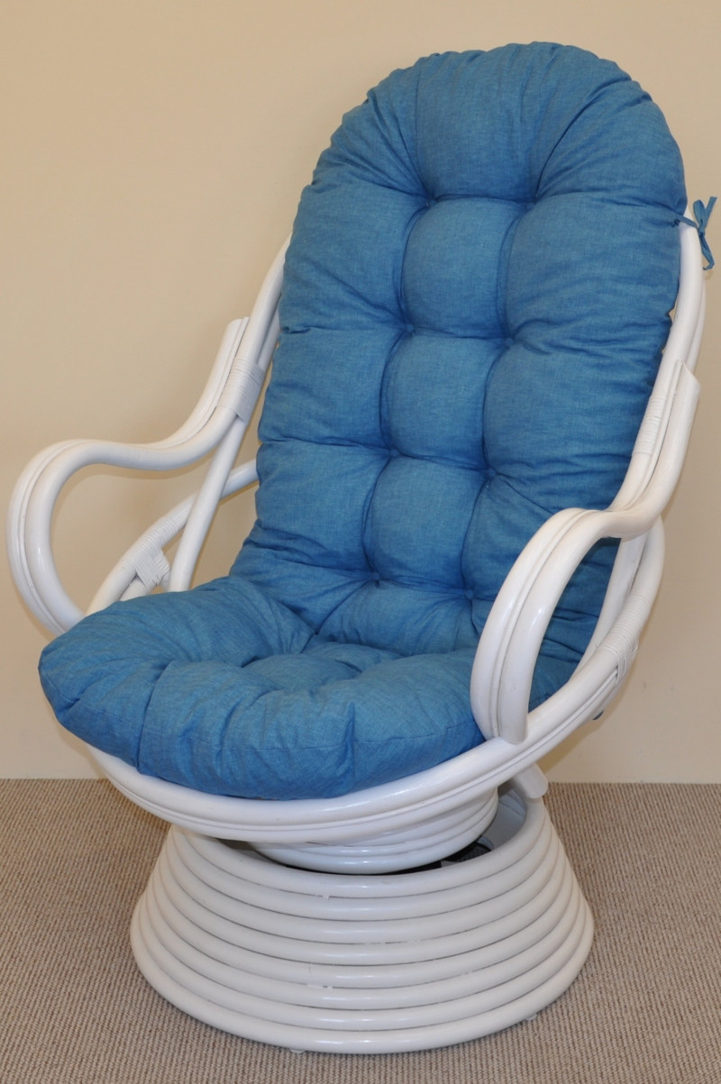 Ratanové houpací křeslo Swivel bílé polstr tyrkysový melír