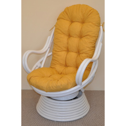 Ratanové houpací křeslo Swivel bílé polstr žlutý melír