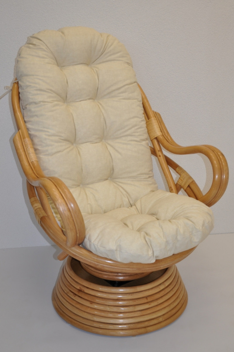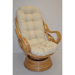 Ratanové houpací křeslo je vyrobeno z přírodního ratanu v barevném provedení konstrukce medové a polstru dle obrázku. | Velikost ratanového křesla je 77x87x100 cm, nosnost 110kg. Kovový díl se čtyřmi pružinami zajišťuje pohodlné houpání a možnost otáčení křesla o 360 stupňů. Barva ratanové konstrukce je medová. Polstr na toto křeslo Swivel je vyroben v České republice. Polstr je vyrobený z kvalitní látky a vyznačuje se vysokou kvalitou zpracování. Polstry pro nás vyrábí firma AXIN Cuschions s.r.o., která zaměstnává výhradně místní vyučené švadleny z České republiky. Tímto způsobem se snažíme podporovat výrobu a zaměstnanost v naší republice. Polstr je vyrobený v ČR a je pratelný na 40oC.