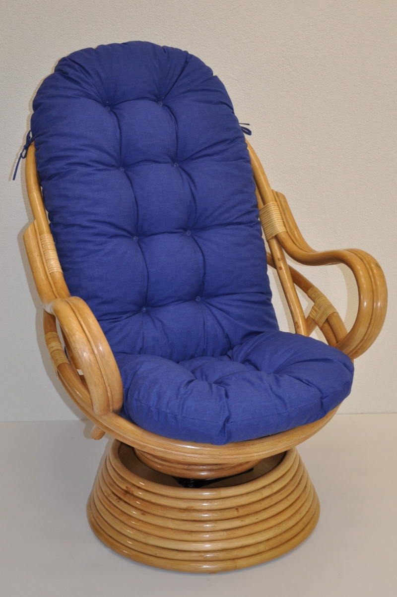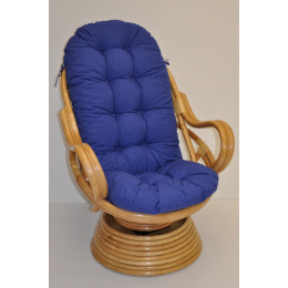 Ratanové houpací křeslo Swivel medové polstr modrý melír
