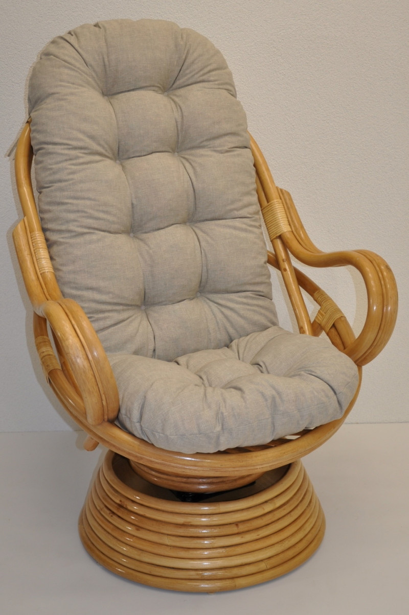 Ratanové houpací křeslo Swivel medové polstr tmavě béžový melír