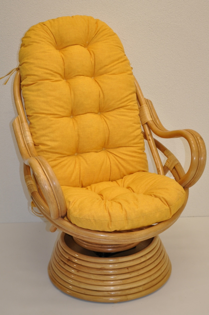 Ratanové houpací křeslo Swivel medové polstr žlutý melír