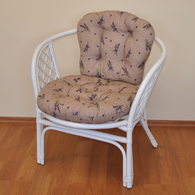 Ratanové křeslo Bahama bílé polstr motiv levandule