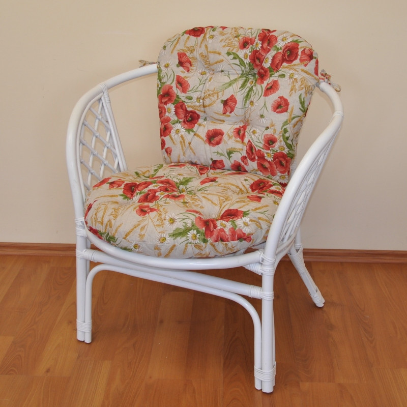 Ratanové křeslo Bahama bílé polstr motiv vlčí mák