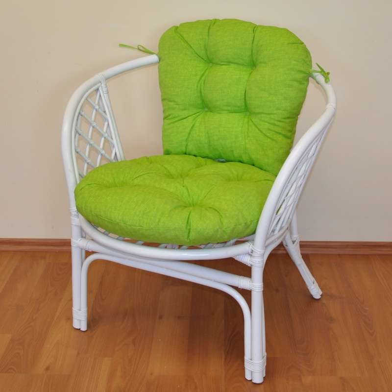 Ratanové křeslo Bahama bílé polstr světle zelený melír