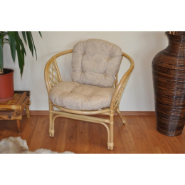 Ratanový nábytek - ratanové křeslo bahama samostatné s polstrem dle obrázku. | Barva ratanové konstrukce křesla je medová. Nosnost křesla je 110 kg. Velikost křesla je 68x66x73 cm. Výška sedu je příjemných 43 cm. Kvalitní polstr je vyrobený v ČESKÉ REPUBLICE