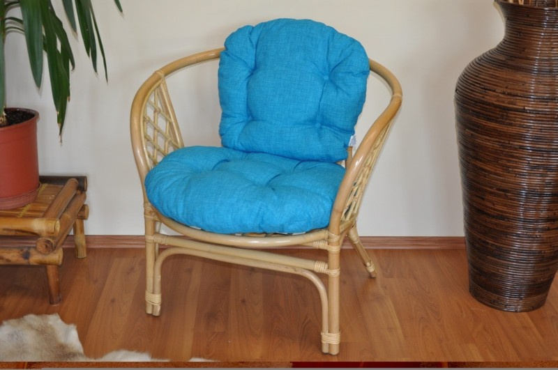 Ratanové křeslo Bahama medové polstr tyrkysový melír