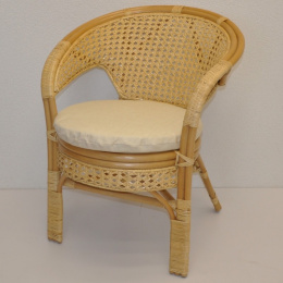 Ratanový nábytek - ratanové křeslo Kina je vyrobeno z přírodního ratanu. Konstrukce křesla je vyrobena z masivních ratanových tyčí. | Velikost křesla je 66x67x78 cm, nosnost křesla 115 kg. Barva ratanové konstrukce i ratanového výpletu je medová. Polstr je vyrobený v České republice.
