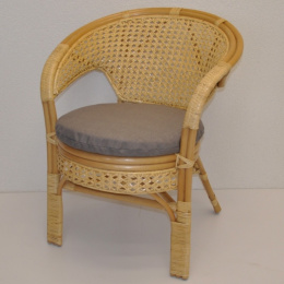 Ratanový nábytek - ratanové křeslo Kina je vyrobeno z přírodního ratanu. Konstrukce křesla je vyrobena z masivních ratanových tyčí. | Velikost křesla je 66x67x78 cm, nosnost křesla 115 kg. Barva ratanové konstrukce i ratanového výpletu je medová. Polstr je vyrobený v České republice.