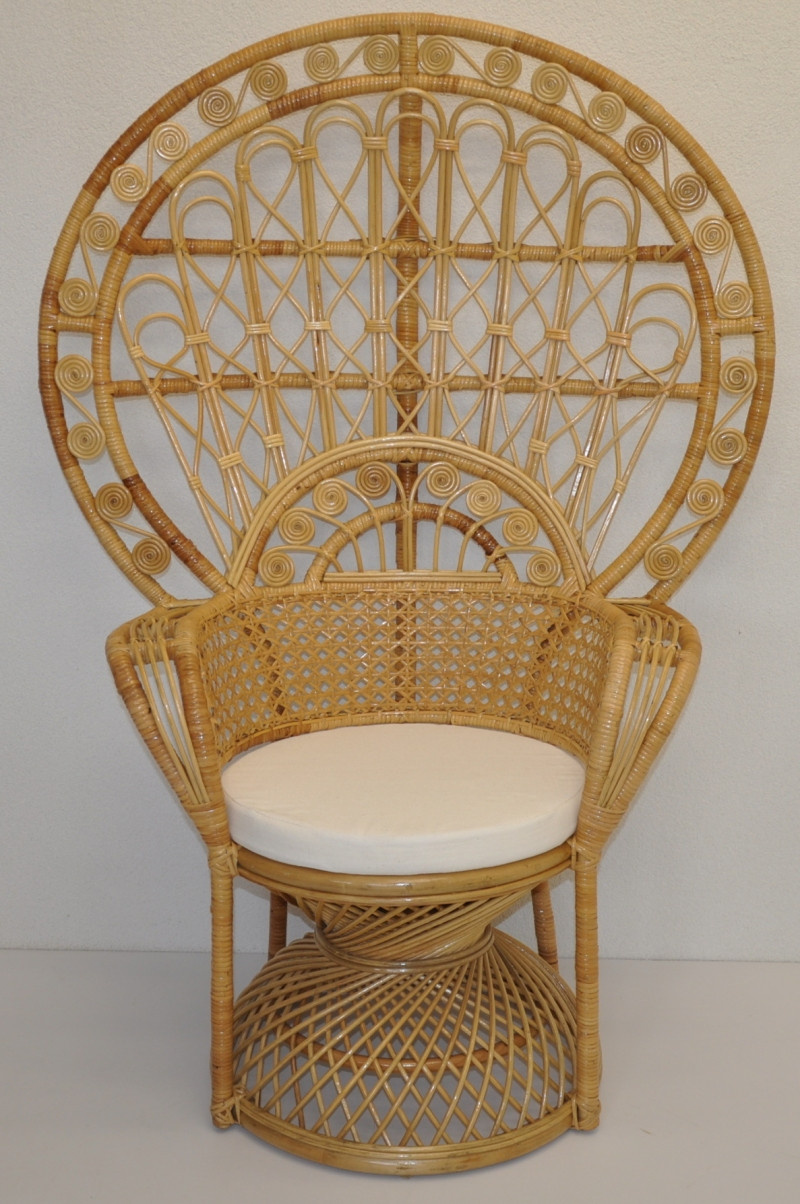 Křeslo King s výpletem z přírodního ratanu. | Konstrukce křesla je tvořena v kombinaci masivních ratanových tyčí a ratanového výpletu. Výplet je tvořen přírodním ratanem. Velikost křesla je 102x65x144 cm. Nosnost křesla je 130 kg. Výška sedu je 45 cm.
