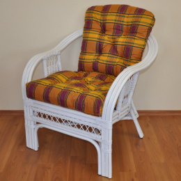 Křeslo Rio De Janeiro je vyrobené z přírodního ratanu. | Konstrukce ratanového křesla je na většině míst trojitá a tím velice pevná. Křeslo je velice pohodlné díky rozložitému tvaru a kvalitním polštářům. Barva ratanové konstrukce i ratanového výpletu je bílá. Velikost křesla je 68x75x74 cm. Nosnost křesla je 125 kg. Výška sedu je 44 cm. Polstry na křeslo jsou vyrobeny v České republice a vyznačují se vysokou kvalitou zpracování.