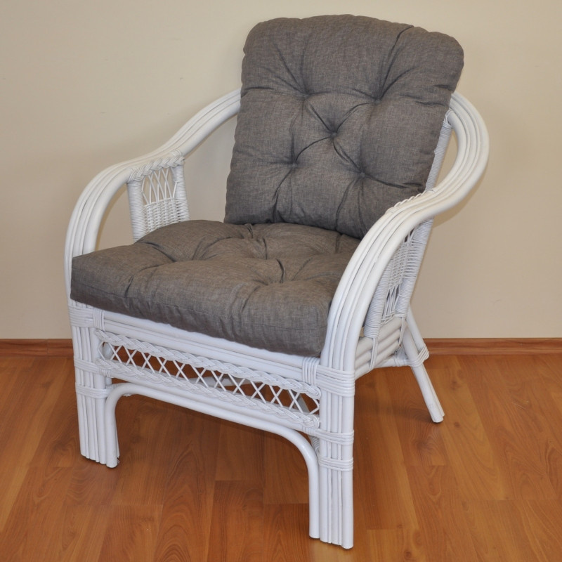 Ratanové křeslo Rio De Janeiro bílé - polstr šedý melír
