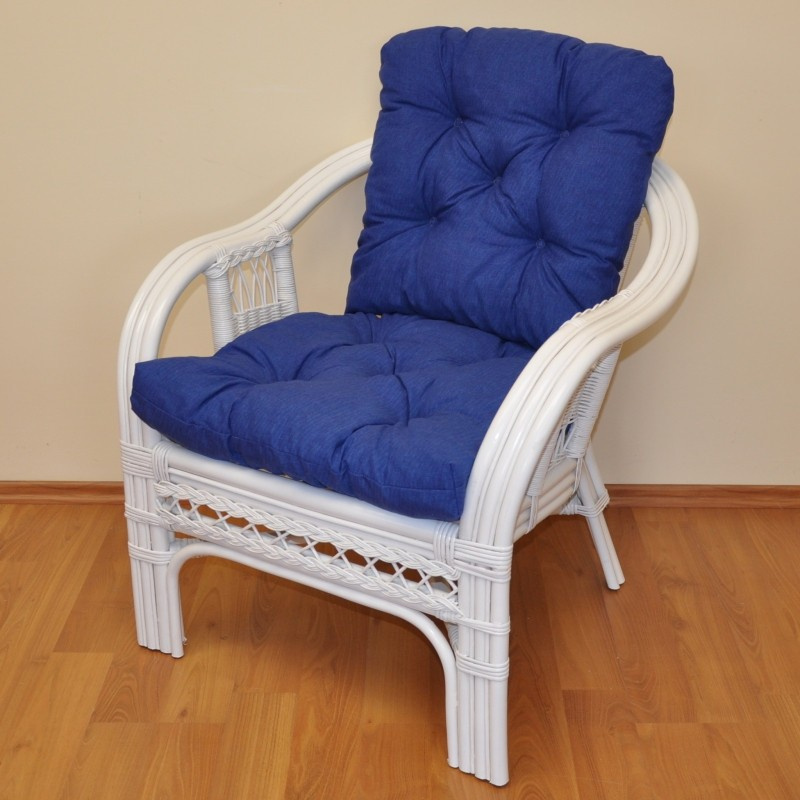 Ratanové křeslo Rio De Janeiro bílé - polstr tmavě modrý melír