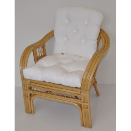 Křeslo Rio De Janeiro je vyrobené z přírodního ratanu. | Konstrukce ratanového křesla je na většině míst trojitá a tím velice pevná. Křeslo je velice pohodlné díky rozložitému tvaru a kvalitním polštářům. Barva ratanové konstrukce i ratanového výpletu je medová. Velikost křesla je 68x75x74 cm. Nosnost křesla je 125 kg. Výška sedu je 44 cm. Polstry na křeslo jsou vyrobeny v České republice a vyznačují se vysokou kvalitou zpracování.