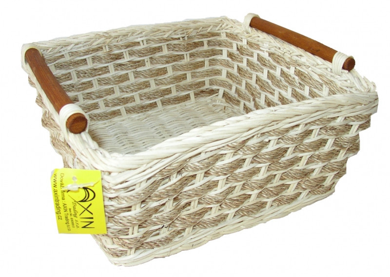 Ratanový košík z bílého ratanu v kombinaci s jutovým výpletem. | Velikost košíku je 17x17x10 cm.