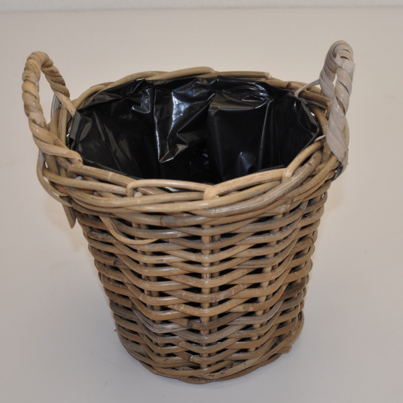 Ratanový košík je vyroben z přírodního ratanu kubu. | Průměr košíku je 25 cm, výška 20/27 cm. Košík je vyplněn černou plastovou folií. Košík je vhodný k osázení okrasnými či sezónními rostlinami.