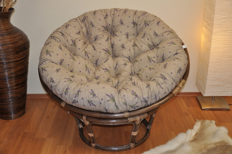 Ratanový papasan 110 cm hnědý polstr levandule
