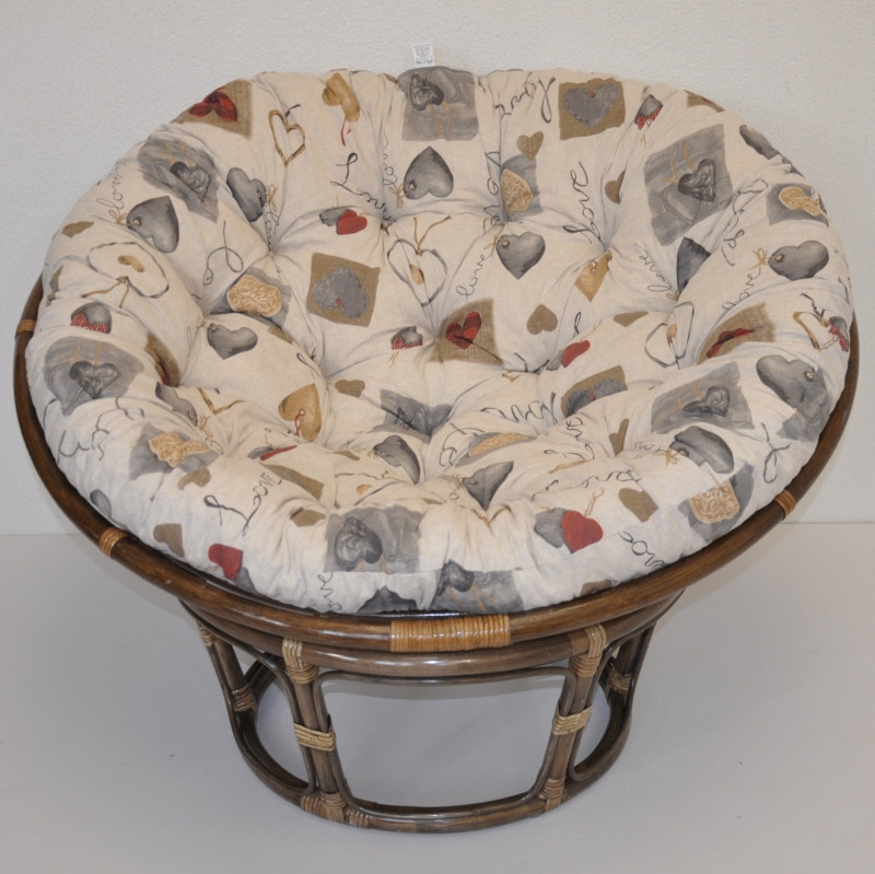 Ratanový papasan 110 cm hnědý polstr motiv srdce LOVE