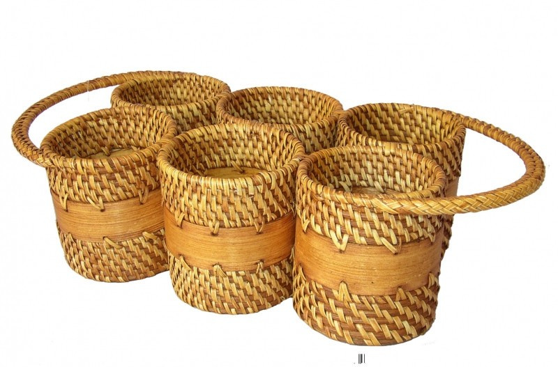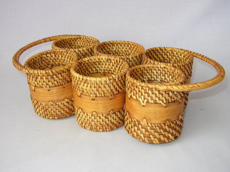 Ratanový podnos na 6 sklenic | Velikost výrobku 27x17x10 cm. Vnitřní průměr otvoru pro kelímek je 7,5 cm a hloubka 8,5 cm.>