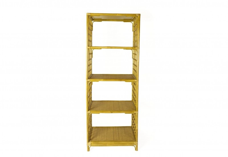 Regál vyrobený z přírodního ratanu. | Barva konstrukce i ratanového výpletu je medová. Velikost ratanové regálu je 68x41x180 cm.