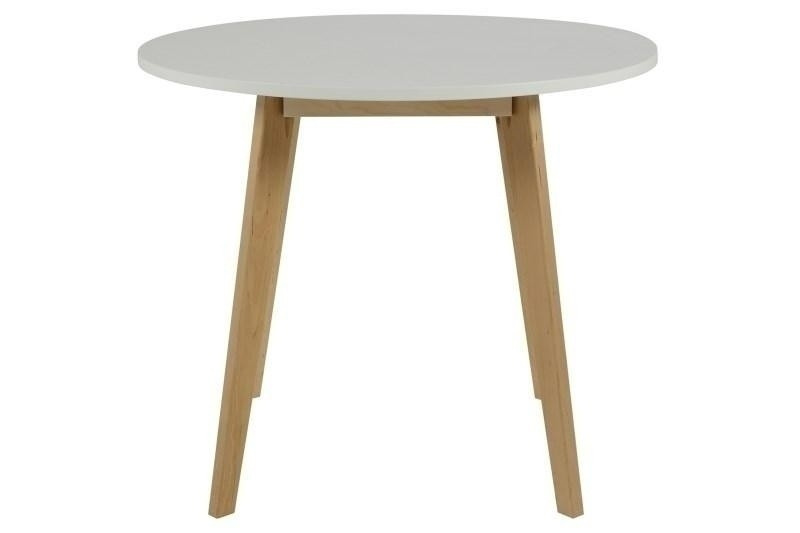 A Raven kerek asztal fehér MDF lapból és fa nyírlábakból készült, amelyeket matt lakkal vontak be.