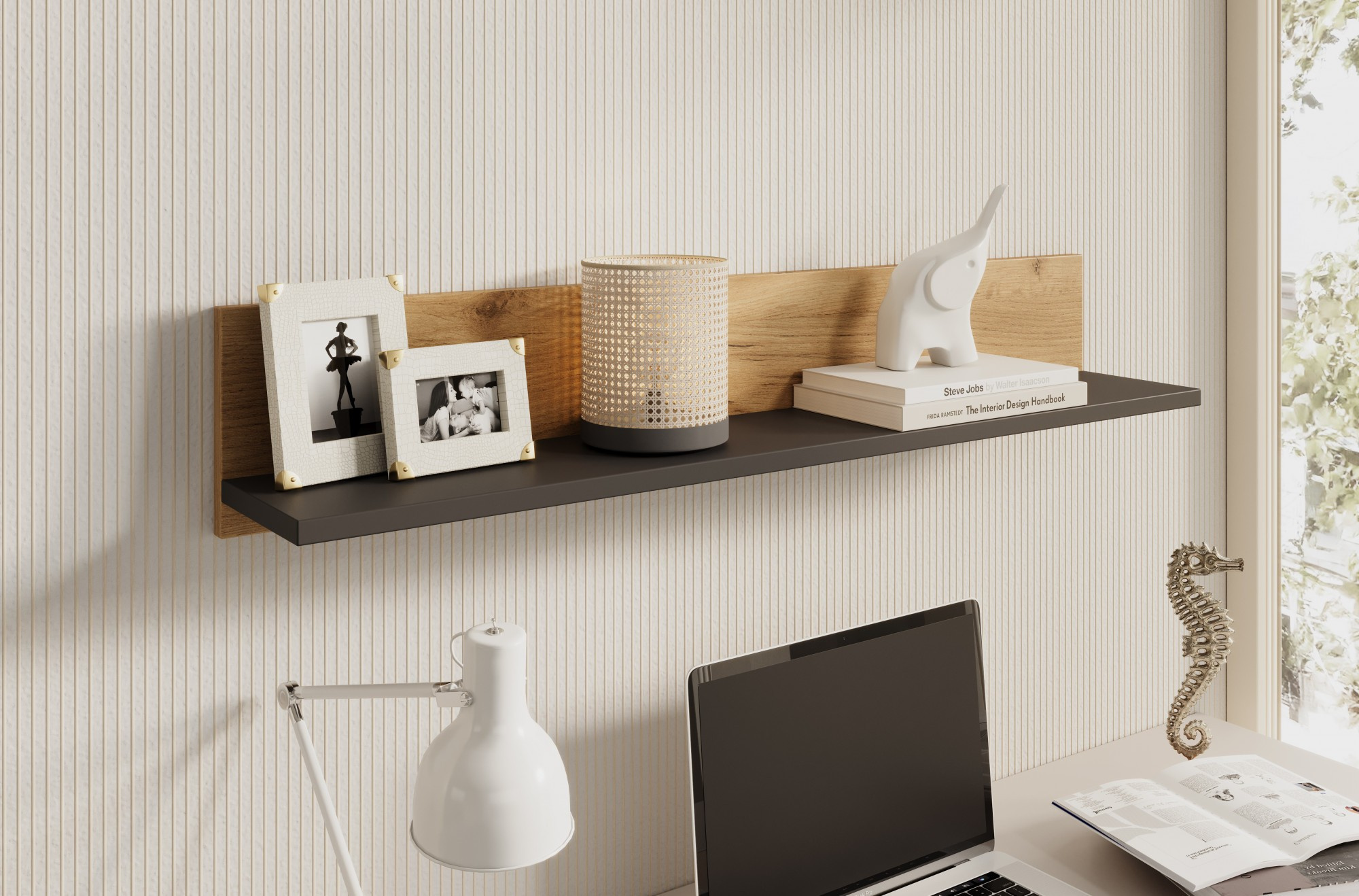 A Ravi 100 cm-es polc stílusos és praktikus megoldás minden belső tér számára. Kiváló minőségű anyagokból készült, ötvözi a funkcionalitást és a modern dizájnt. Minimalista formája tökéletesen illeszkedik a különböző elrendezésekbe, a klasszikustól az ipariig. Rengeteg helyet kínál könyvek, dekorációk vagy más apróságok tárolására, ami segít rendet tartani a szobában. A Ravi polc szilárd szerkezetének köszönhetően tartós és alkalmas mindennapi használatra. Kiválóan illik a nappaliba, hálószobába, előszobába vagy irodába, eleganciát és harmóniát kölcsönözve a belső térnek.