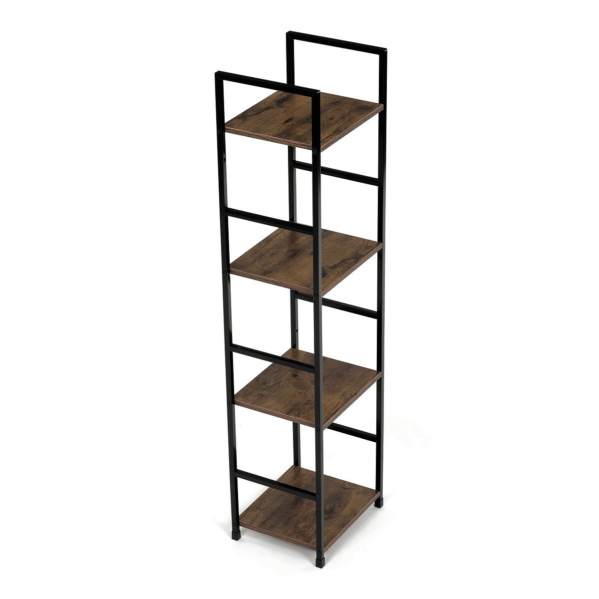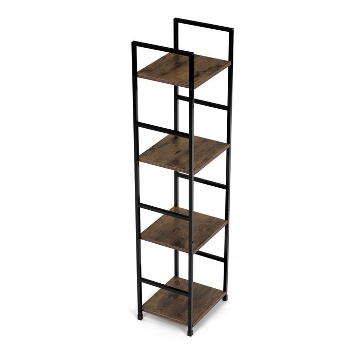 Představujeme vám praktický čtyrpatrový regál značky Autronic v industriálním stylu. Tento elegantní kousek v hnědé barvě kombinuje pevný kovový rám s deskami z MDF s dekorem starého dřeva. Jeho kompaktní rozměry umožňují snadné umístění do každého obývacího pokoje, kde poskytne dostatek prostoru pro vaše dekorace, knihy či další drobnosti.