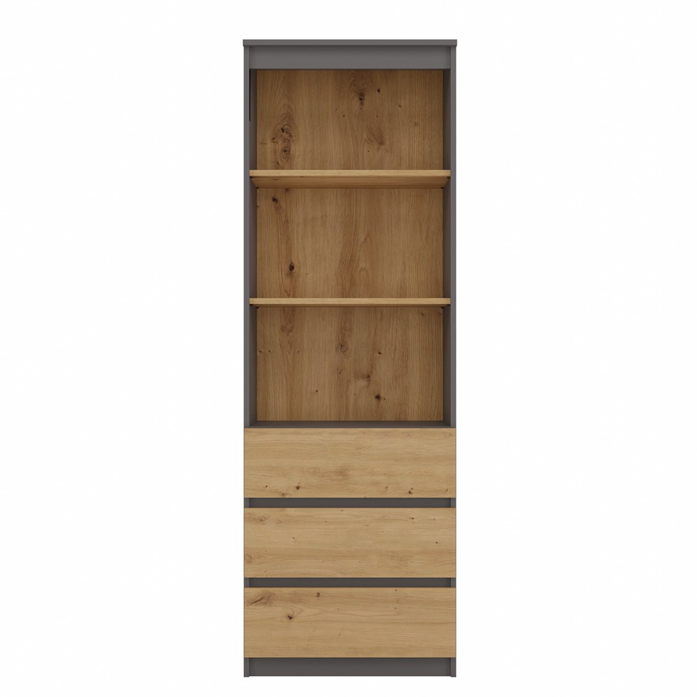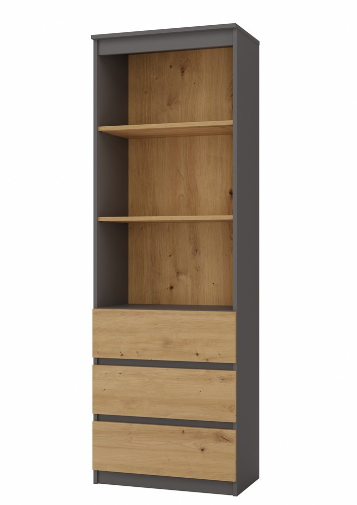 Nadčasová knihovna Moly v minimalistickém designu je praktický kus nábytku, který si najde své místo jak v obývacím pokoji, tak i v kanceláři nebo ateliéru. Knihovna je vyrobena z nejkvalitnější laminované desky odolné proti poškrábání a vlhkosti, hrany jsou povrchově upraveny ABS.