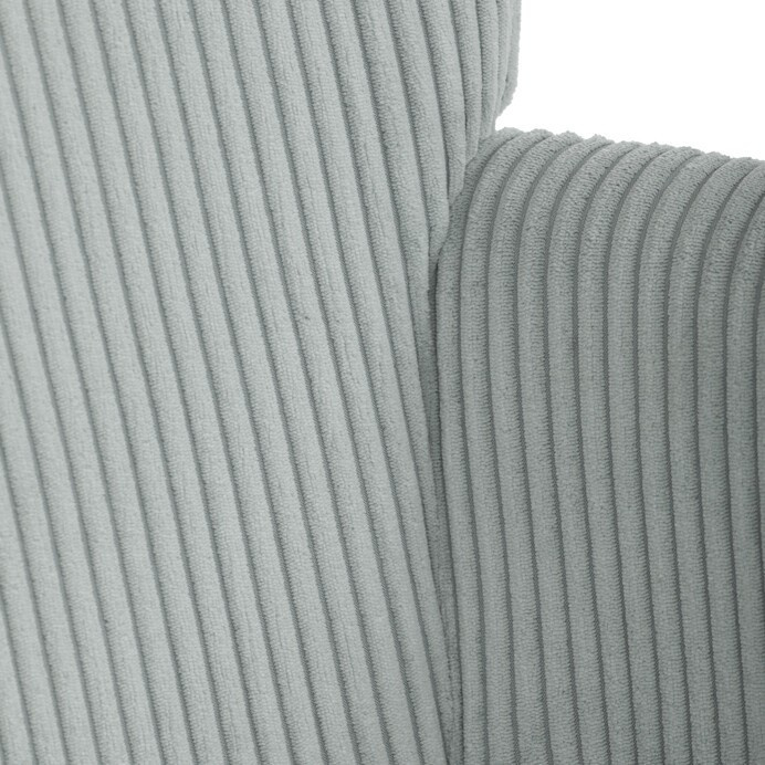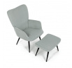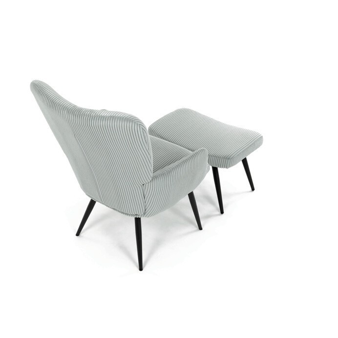 Relaxační křeslo s podnožkou v modrém manšestru nabízí pohodlné posezení díky měkkému čalounění a ergonomicky tvarovaným područkám. Pevné černé kovové nohy zajišťují stabilitu a dlouhou životnost. Manšestrová látka dodává křeslu příjemnou texturu a vizuální hloubku, která se hodí do moderních i klasických interiérů. Součástí je praktický taburet pro pohodlné opření nohou, který sdílí stejný design a materiál. Křeslo není otočné ani rozkládací, což podtrhuje jeho jednoduchost a funkčnost.